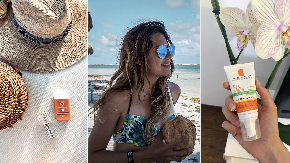Te recomiendo el Anthelios Spray Invisible FPS 50+ de La Roché Posay, el cual es ultra resistente al agua, sudor y a la arena. Además tiene textura ligera, fácil de aplicar y no deja manchas blancas.